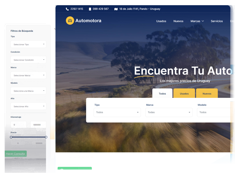 Si no eliges el diseño personalizado, tu plataforma web será igual a la de muestra, pero con tu logo, el color principal de la web será el principal de tu logo y el cuerpo se lo darán los vehículos que le cargues.